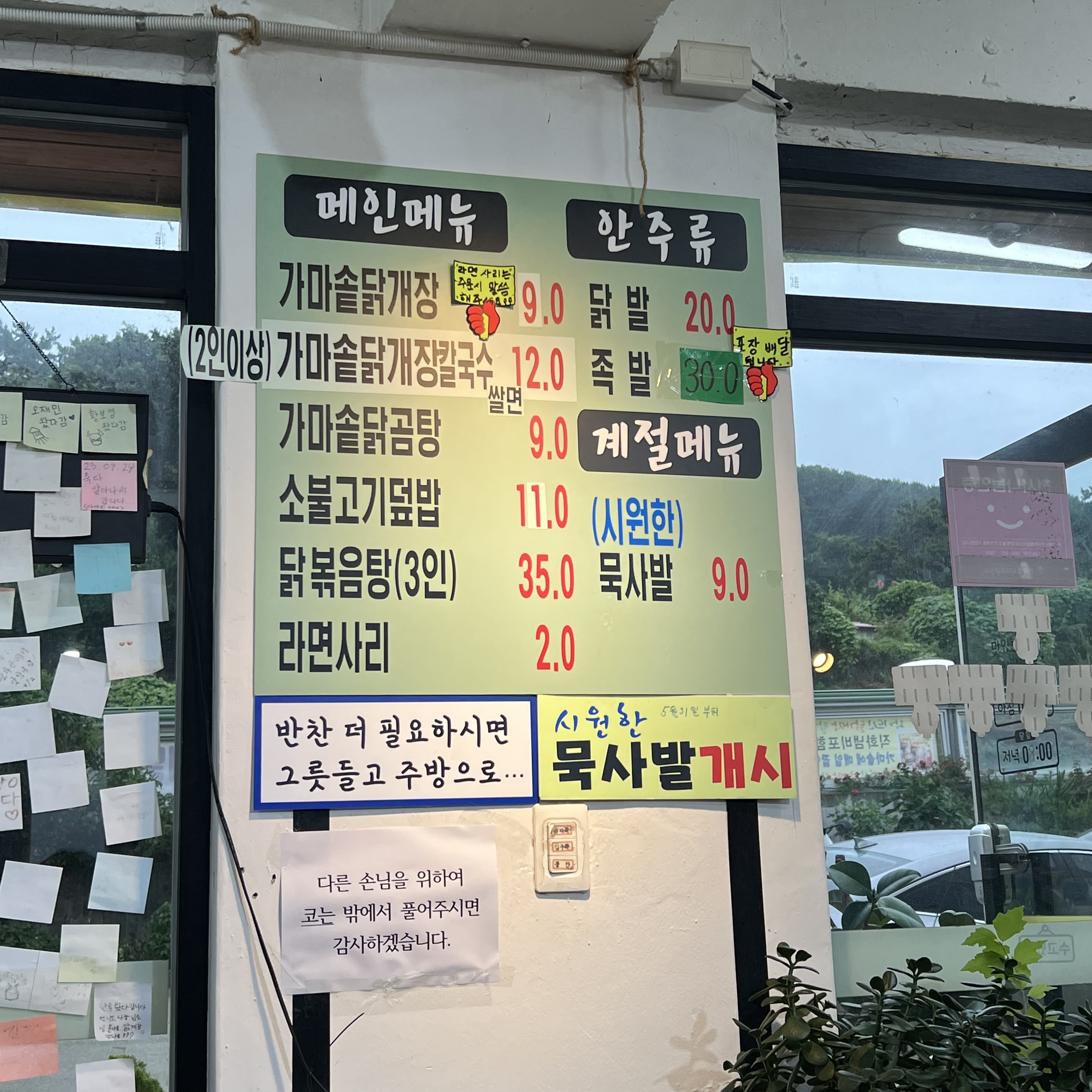 메뉴는 닭개장, 칼국수, 닭곰탕